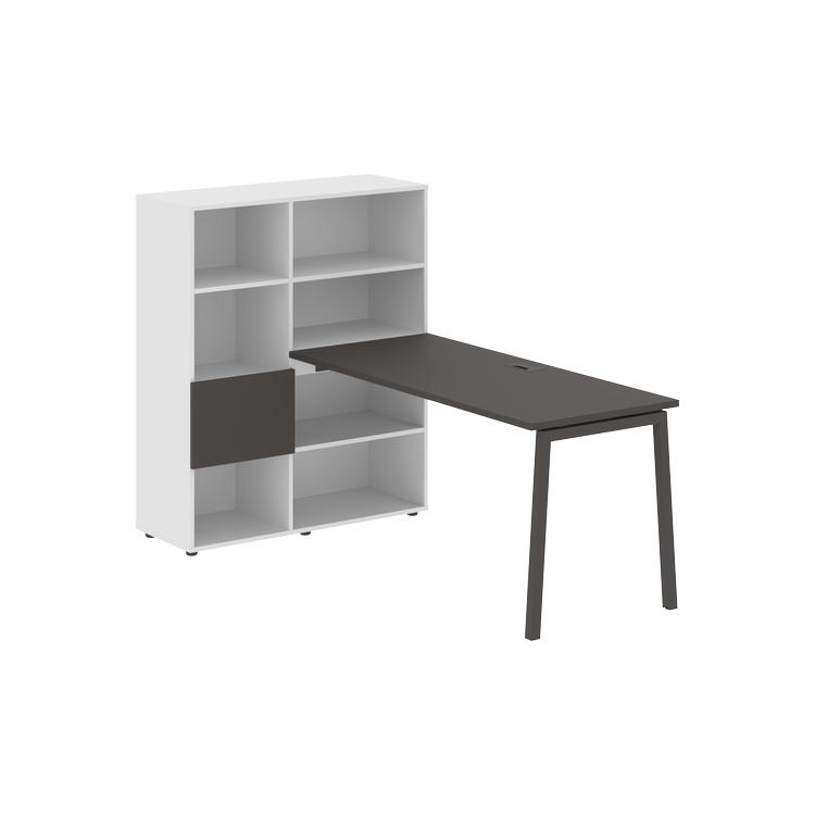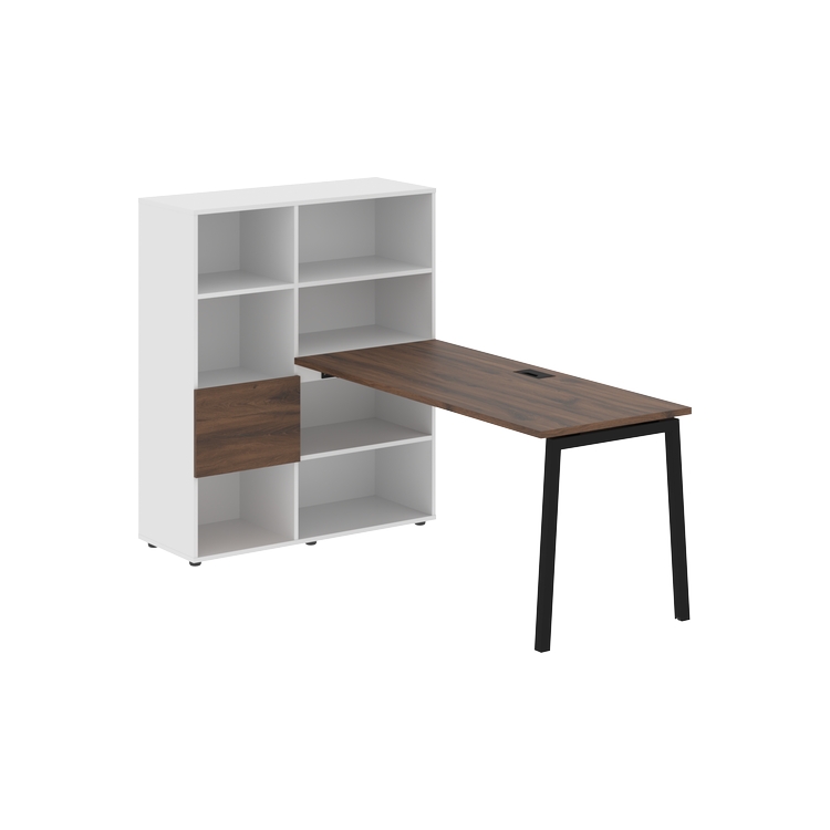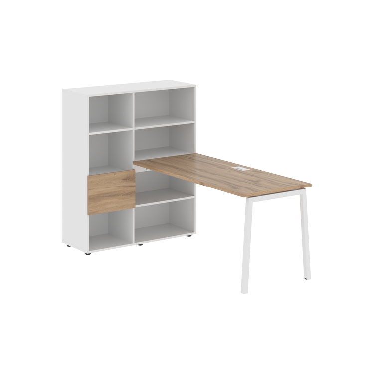Каркасы стеллажей полностью из ЛДСП т.18 мм с кромками ПВХ т.2 и 0,45 мм, задняя стенка из ЛДСП. Комплектуется малой дверью в цвет столешницы и регулируемыми опорами h= 27 мм.