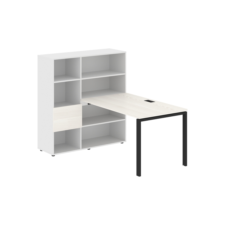 Столешница глубиной 800 мм, комплектуется регулируемой опорой П-образной формы из профиля трубы 60х30, комплектом телескопических траверс и двумя кронштейнами для крепления к стеллажу.