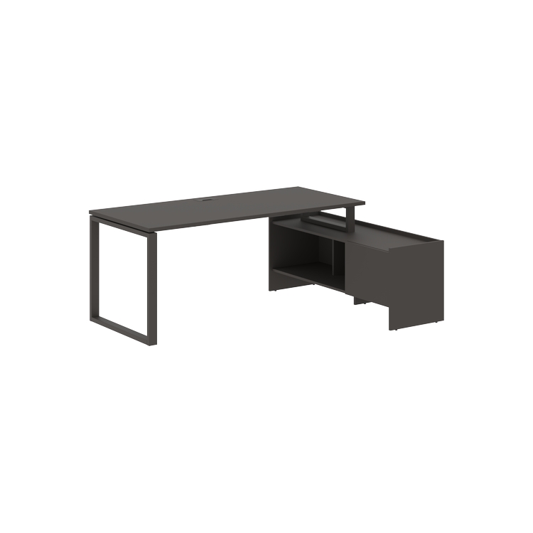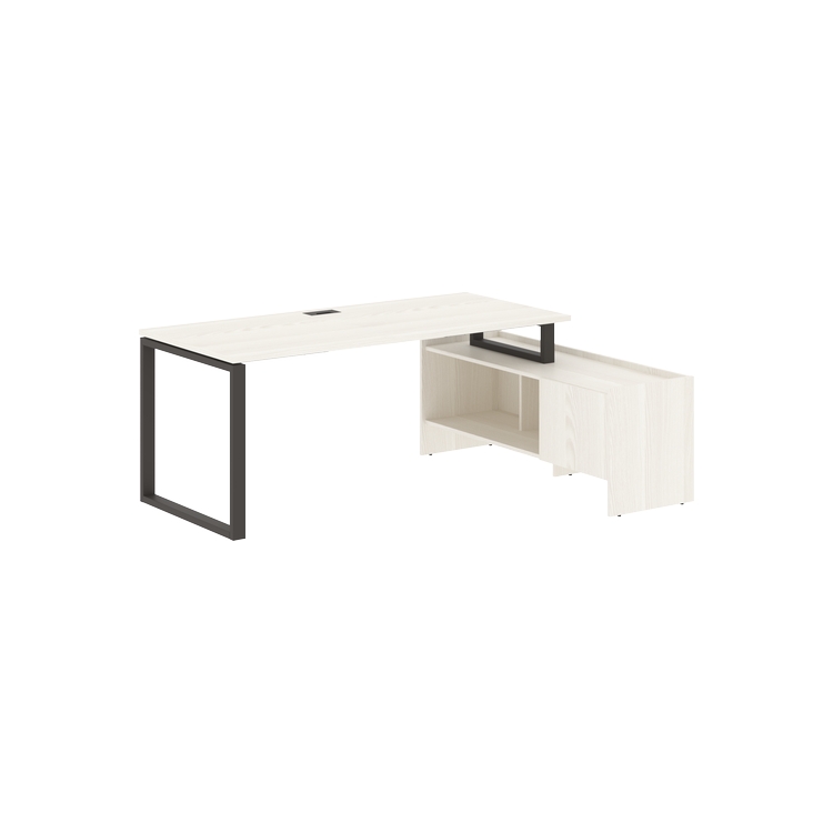 Столешница глубиной 800 мм из ЛДСП т.25 мм с кромками ПВХ по периметру т.2 мм. Комплектуется металлическим кабель-каналом габаритом 160х80х25 мм.