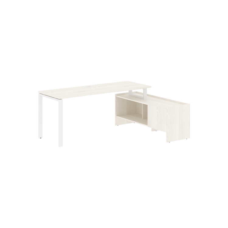 Столешница глубиной 670 мм из ЛДСП т.25 мм с кромками ПВХ по периметру т.2 мм. Комплектуется металлическим кабель-каналом габаритом 160х80х25 мм.