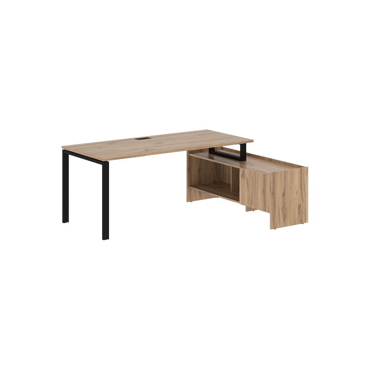 Столешница глубиной 800 мм из ЛДСП т.25 мм с кромками ПВХ по периметру т.2 мм. Комплектуется металлическим кабель-каналом габаритом 160х80х25 мм.