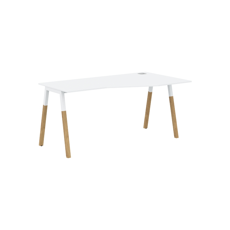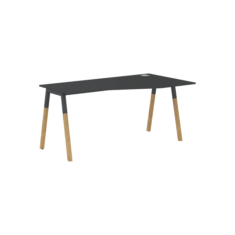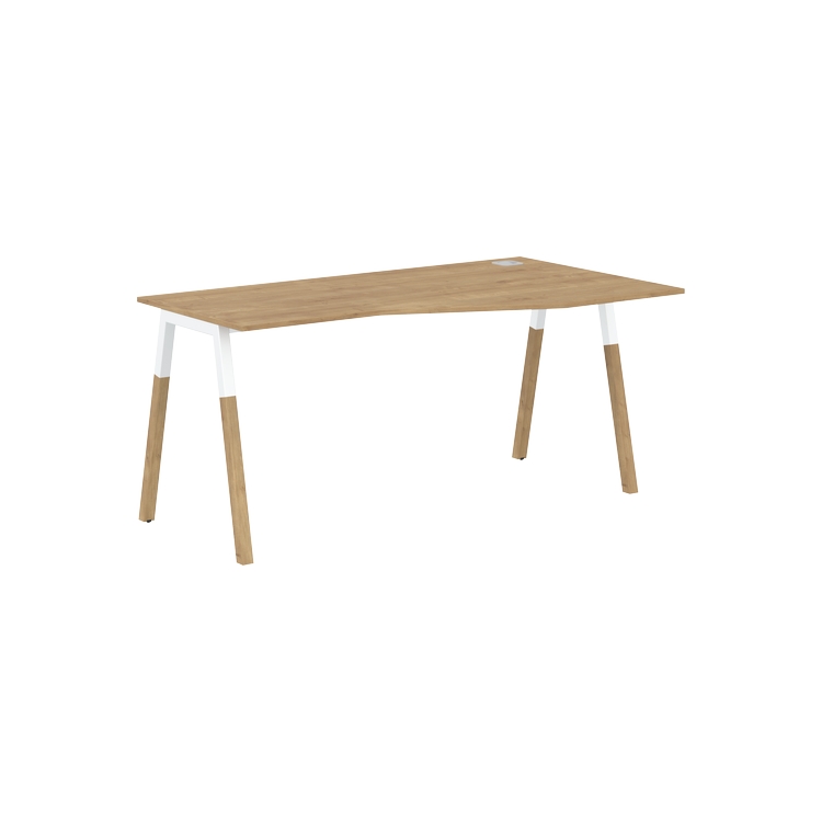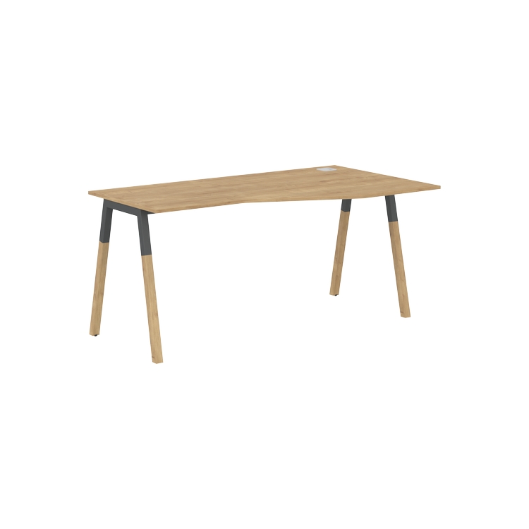 Столешница эргономичная из ЛДСП т.18 мм. c кромкой ABS т.2 мм, комплектуется квадратной заглушкой кабель-канала слева или справа, 2-мя траверсами и комбинированными опорами А-образной формы, верхняя часть из профиля трубы 40х40 мм и нижняя часть из массива бука; отделка – масло-воск.