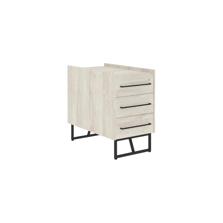 Каркас тумбы из ЛДСП т.18мм с кромками ABS т.0,45 и 2мм. Комплектуется 3-мя ящиками. Верхний ящик с замком. Направляющие шариковые. Ручка металлическая с межцентровым расстоянием 320 мм, цвет - черный. Каркас тумбы устанавливается на металлокаркас из профиля трубы 20х20х1,5мм, цвет металлокаркаса - черный