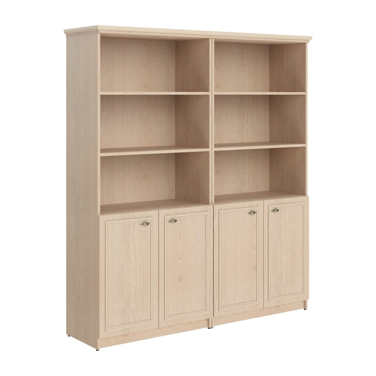 Коллекция изготовлена с учетом всех особенностей классической мебели – теплые тона натурального дерева, карнизы, профильные рамки, накладной орнамент, ручки, стилизованные «под бронзу».